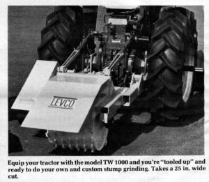 A smaller companion mode (TM 540) takes a cut 13 in. wide and 10 in. deep. It will cut stumps of any diameter, same as the larger model.