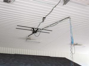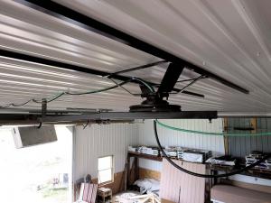 “It’s really handy and lets me use both my air and electric-operated shop tools anywhere without getting them tangled up. As far as I know there’s nothing like it on the market,” says Brubaker. “I use my shop to construct small sheds that I sell commercially, so I spend a lot of time operating these tools and moving them around. The electric cord is attached to a screen door spring and the air hose to a coil, which causes them to retract. A stop keeps the cords from getting tangled up. Since both cords are 50 ft. long and the boom is only 12 ft. long, there’s always some excess cord that I have to tie up. If I did it again I’d use cords that were only 25 ft. long so I wouldn’t have that problem.”