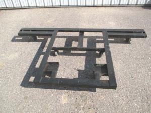 The dolly is made from welded-together 6-in. channel iron and measures 7 ft. wide and 46 in. deep. It rides on 7 steel caster wheels.