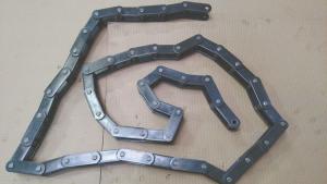 The chain comes in 10-ft. lengths. Each contains about 46 links with a pitch of around 2.6 in. Side links are made out of 1050 heat-treated steel.