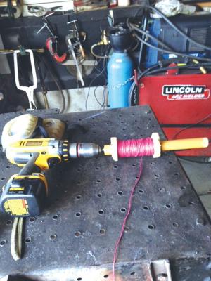 “To wind up the string, I just insert the threaded shaft into a cordless drill and start it up. Works like a charm.”