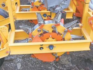 One key to the Polyplanter’s success is the way it punches holes in the plastic. “It cuts more than tears, with the flap usually tucked under,” says Ferris. “You do need to keep the knives sharp so they go into the ground straight and wear less.”