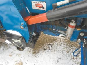 The tabs hold the brackets in place, with the cylinder barrel resting against the brackets, until the loader is lowered to about 3 ft. above the ground. At that point, the weight of the loader secures the brackets, and pressure on the valves is released so they’re free to use for other things.
