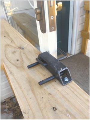 When Lance VanGennip’s dad got to the point where he needed a wheelchair, they discovered the storm door made it very difficult to get him in and out of the house. After a short trip to their farm shop near Marble Hill, Missouri, Lance came up with a simple hold open device that attaches to the railing on the front door ramp.