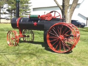 After making many trips to the scrap pile and doing a lot of fitting, he finally got the tractor to come together. He painted it black and burgundy “because in the old days a lot of steam engines were painted those colors.” Then he made a list of all the parts that he had used to build the tractor and brought it to the show.