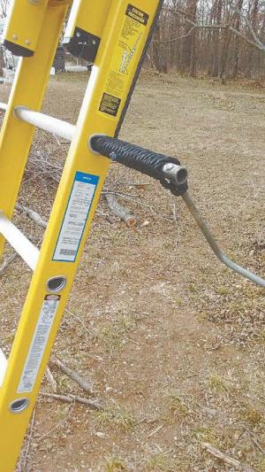 Frank Heraghty, Claremore, Okla.: “I had trouble trying to hold up a big extension ladder and guide it while raising the upper half of the ladder at the same time. So I came up with a simple and cheap solution. I inserted a 1-in. dia. pipe through one of the rungs towards the bottom of the ladder. A 10-in. long, L-shaped handle is welded onto one end of the pipe. A rope wound around the pipe leads up and over the top part of the ladder, then back down to its bottom rung. Four or five cranks of the handle will raise the top ladder about one foot.”