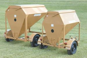 The Handi-Hopper comes in 1-ton (53 cu.-ft. or 40-bu.) and 2-ton (83 cu.-ft. or 65-bu.) models. The 8 1/2-ft. long by 6 1/2-ft. tall by 6-ft., 5-in. wide, 1-ton model is designed to fit through a standard garage door. The 2-ton model is 10 ft., 2 in. long by 7 1/2 ft. tall by 7 ft., 2 in. wide.