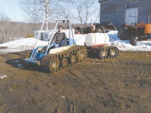“I’m well satisfied with how it turned out,” says Cunningham. “I had been using an expensive commercial tracked machine, but it broke down frequently, and I spent a lot of money trying to fix it. I tried using a snowmobile with a trailer to haul sap, but driving on bare ground at times was hard on the machine.