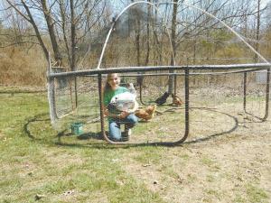 Some of Bube’s best creations with the frames hold livestock. His mobile chicken pen came from a 13-ft. dia. trampoline frame that he extended with pvc pipe and zip ties to create a dome with bird netting over the top to keep out chicken hawks. Because it is lightweight, the pen can be moved to new grass as often as needed.