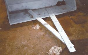 Foellmi drilled two holes about 3 ft. apart in the back of the bucket and two more directly in front.
