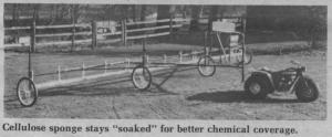 The 30-ft. wide model weighs less than 200 lbs. and adjusts in height from 2 in. to 4 ft. You can use it on most any crop at any stage from seed to harvest. Three-wheelers, motorcycles, light tractors or pickups can be used to pull it. The unit rides on narrow but heavy-duty sulky-type wheels.