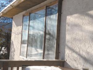 He screwed 2 by 4’s together to make an outside frame and screwed the frame with angle brackets into the house wall, and he also added 2 by 3 wood stiles inside the frame. Then he placed pieces of clear vinyl or acrylic over the window and stapled them onto the frame. He also screwed on pieces of thin wood batting over the window. There’s a 4-in. gap between the outside vinyl covering and the actual house window, which produces a btu barrier of about 13 degrees.
