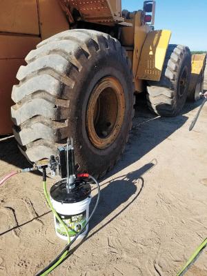The operator then opens a valve, allowing the sealant to flow into the tire unobstructed, says Prickett. “A battery-operated meter on the pump assembly indicates the amount of sealant delivered into the tire.”