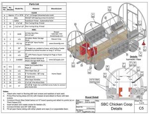 The coop also contains two 30-gal. water reservoirs to feed nipple waterers. Roosts are 2 by 2 by 8-in. pine wood slats hung from wire rope on either side of the coops’ interior.