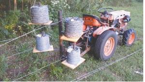 Wire Unroller Speeds Up Fencing FENCING Tools Instead of paying $150 for a tool to unroll wire one strand at a time Will Bass built a vertical tower to unroll up to 6 wires at a time “I built it with mostly scrap metal that I had laying around using oil field pipe for the main upright ” Bass says The 2 3/8-in pipe used for the 4-ft mast is welded to a 2-in receiver tube that fits on the 3-pt hitch of his tractor Shorter 6-in pieces of 2 7/8-in pipe slip over the main pipe to create adjustable arms that can be tightened in place with a bolt Each arm has a foot-long piece of 1 by 1 1/2-in square tubing welded to 16-in long 1-in round tubing going through the center of a plywood base to hold a wire roll Bass noted that later on he welded 1-in fender washers near the bottom of the pipe to lift the wire rolls so they spin more freely To roll out the wires he uses his small tractor and drives near the fence posts and loosely attaches wires with clips to every other T-post He stops the tractor at the end then works with one wire at a time cutting and stretching it before moving on to the next wire Then he goes back and installs clips on T-posts he missed and tightens the others “This saved multiple trips walking back and forth while carrying heavy spools of wire I was doing up to an eighth-mile stretch at a time ” Bass says Friends have borrowed the unroller for their fencing projects and he plans to use it again when he acquires more property Bass who works as a CPA is a regular contributor to the homemade tools forum and has several YouTube videos Other farm-related inventions include a fence post driver that attaches to his truck and drives metal and wood corner posts into the ground without digging a hole and a clam bucket for picking up logs on the back of his tractor Contact: FARM SHOW Followup Will Bass Pawnee Okla www youtube com/user/imabass77/videos