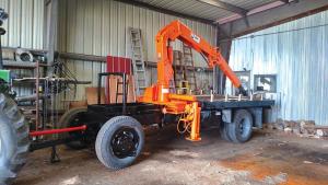 The only other changes made involved painting the trailer frame black and giving the boom a fresh coat of orange. The trailer with its articulated boom has hauled logs, as well as other items, around Cerveny’s farm. He even has a new safety basket to use as needed.