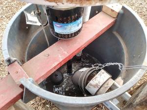 Gutschenritter added a 2 by 4 through the former grips of the trash can to brace the pedestal sump pump.