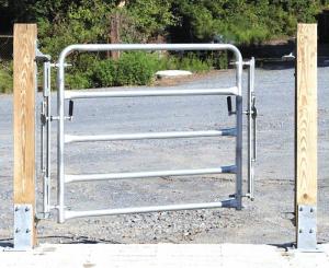 “This double-hinged gate makes directing livestock where you want them to go an easier job,” says E.J. Zook, CK Mfg., Lancaster, Pa. “For example, if the gate leads to 2 different alleys going in opposite directions, you can easily swing the gate open toward either alley.”