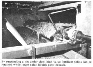 Although machines are now on the market to separate feces from urine after the manure is in the pit, the Dutch researchers felt a simpler system of immediate separation, in the barn itself, was needed. Their solution was to suspend a net beneath the slats to catch solids while letting liquids pass through. The net is then cranked to one end of the barn by rollers and the solid manure dumped into a separate pit or gutter for removal.