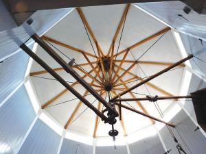 A unique feature was a center-rotating turntable floor with a rail around the edge. A horse-drawn hay wagon could drive onto the turntable which could then be turned to one of the 12 mow sections to offload the wagon. Once empty, the horse and wagon would be turned to face the door, making it simple to exit.