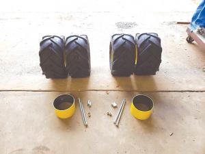 Shelato suggests four lug extensions on heavier zero-turns and compact tractors. Lighter machines need only two to hold the tie rings tight. His first tie rings were built with 20-ga. steel, as it was the heaviest he could form in his home shop. He would wind it like a clock spring while fitting it to the rim-size form.