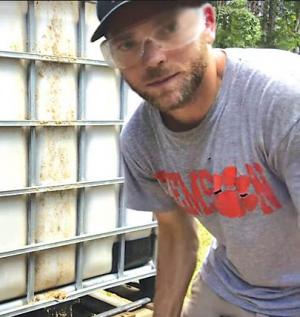 The tanks are light enough for easy tipping when it’s time to get the last bit of feed out, and Siewicki uses a hoe to scrape out what’s left.