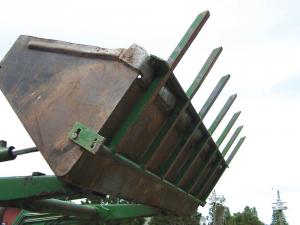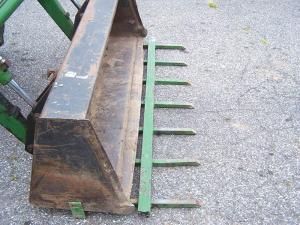 “It works very well to get a bite with the bucket into manure that’s packed with straw,” he says. He also uses it to clean plant debris in the garden and for lifting pipes and 2 by 4s.