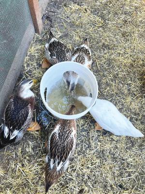Premade duck watering systems can cost $150 or more. Rancher and outdoorsman Dale Stark found a cheaper alternative. He took a standard 5-gal. bucket and drilled four 4-in. dia. holes around the middle to make a simple duck waterer. His ducks can easily fit their heads through the holes, ensuring they have consistent access to fresh water. A lid over the top helps the water stay clean.