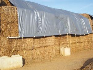 Rocky Meadow Farm offers the tarp in 36 and 48-ft. lengths in widths from 20 to 33-ft. The company website has a chart to show the width needed according to round bale sizes. (They also work for square bales.) Prices range from $140 to $349.