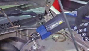 Gough’s Mini-Ductor is a small hand-held tool with a non-slip grenade grip and trigger switch. Pulling the trigger heats a coil that can turn a rusted nut red hot in 15 seconds. Gough says it’s a fast, safe and easy on workers who deal with removing stubborn parts.