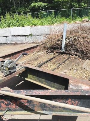 Winch Drags Yard Debris Off Trailer