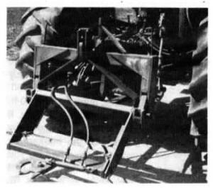 My new Trailer-Mate automatic hitch eliminates the need for expensive adapters on wagon tongues like you need with other auto hitches. My hitch is equipped with hydraulically-operated jaws that are opened and closed by a 1 by 4-in. cylinder. The hitch pin is left in the wagon tongue at all times. The hitch is lowered to the ground and the opera-tor backs up until the stationary jaw contacts the hitch pin. Then the moveable jaw is hydraulically closed around the pin.