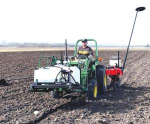 Darin Hubscher may plant only 10 acres of sweet corn, but he takes the job seriously. His 2-row planter has the technology of a much larger planter. The White planter units offer exact seed placement, and his liquid fertilizer system delivers precise amounts of phosphorous and nitrogen.