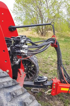 “Lend-A-Hand keeps everything hanging over the hitch, so there’s minimal disturbance of hoses and electrical harnesses,” says Curtis Hiebert, The Attachment Farm. “Our latest model has a slot to keep electrical cables above the hydraulic hoses. It’s very important to not pinch those wires, or they can cause issues.”