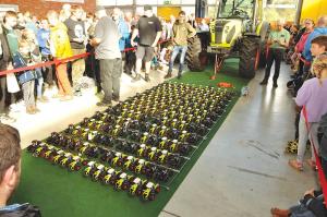 German Farm Toy Show Attempts World Record AG WORLD Despite a failed attempt last year Gerd Mohr and other engineers are convinced they can pull a 4 100-kg 9 039-lb tractor with about 150 1/32-scale model tractors Organizers made their world record attempt in October 2023 at Traktorado one of Germany’s largest agricultural model-building events Tests and calculations before the event indicated that the 156 models’ combined pulling force totaled 105 kg 230 lbs which was enough to pull the 103-hp Claas AXOS 240 tractor with 75 kg 165 lbs of torque required to make it roll Participants were asked to put three brand new AA batteries in each Siku Claas Xerion 5000 Trac VC model that’s Bluetooth enabled It quickly became apparent that some batteries were weak Batteries were changed and each model was connected to the remote control one at a time But models kept losing connection likely due to low batteries in the remote controls “In the end we had around 110 to 120 models online and gave the start signal as quickly as possible so that no more models were lost We lacked the pulling power of around 40 models and the rolling resistance of these models naturally made things more difficult ” Mohr says “There were 156 models that caused a lot of radio traffic in a small space Several hundred spectators stood directly around the action and most had a cell phone with Bluetooth which led to even more radio traffic ” The Claas tractor moved slightly but not enough to get it rolling The large crowd that gathered for the event was encouraging so plans are to try it again at the 2025 Traktorado “In the next attempt we will not first hang the models in the tow frame and connect them individually but rather connect the models in small groups of five to six people in each corner of the exhibition hall and then go to the tow frame to get them into position ready for use If some models lose connection the drivers can go back to a corner of the hall where they start and register the model again ” Mohr says And they’ll make certain fresh batteries are put in all the models and remote controls Contact: FARM SHOW Followup Traktorado info@hof-mohr de; www Traktorado de