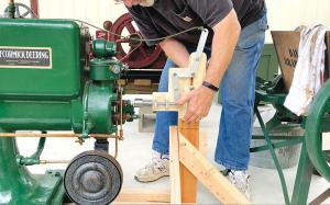 Like many hit-and-miss engine enthusiasts, he first built a “starter stick” that spins the flywheels for an easier start. Miller’s version includes a 12-volt starter motor, solenoid, battery cables and battery, rubber boat trailer roller, and a metal shaft. A video and instructions can be seen on his YouTube channel. Search for “Make a Starter Stick for Hit and Miss Engines.”