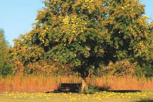 The trees require maintenance and should not be allowed to become invasive. Thorns make them challenging to cut and control, and the fallen fruit should be picked up and removed.
