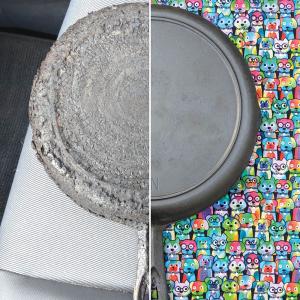 “For anyone who has cast iron, rust can happen, like when you leave a wet lid on the pan. If it’s minor you need to take care of it before the rust takes over,” she says. A wool scouring pad, liquid dish detergent, and elbow grease may solve the problem.