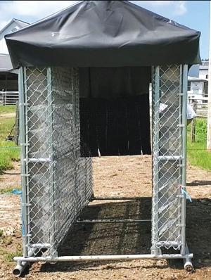The concept is simple. Cows walk through the trap single file and brush against the carpeting hanging over the entrance. This scrapes the flies off and brushes them into the wire walls of the trap. “Some flies fly off when an animal walks into a building. The others get brushed off by the carpeting that hangs low enough to touch the animal’s back,” explains Wengerd. “Flies naturally go toward the light, which takes them into the trap made from aluminum screen. They get caught in the trap and can’t get out.”