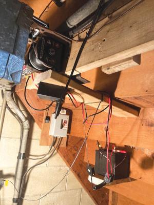 With the tracks mounted to either side of the stairs and the winch in place, Sieting added a hard-wired remote for the winch. The cable is long enough to be used at either end of the stairs. When not in use, it hangs at the top of the stairs with the lift platform at the bottom. A Harbor Freight battery tender keeps the battery charged.
