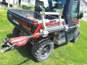 “I wanted to take it around the edge of hayfields to trim back cab-whackers,” says Whittle. “I realized there wasn’t a good way to carry it around on my Polaris side-by-side. I looked online but saw nothing, so I made a carrier myself.”
