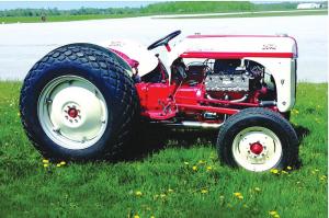 The engine on his tractor is a ’53 Ford V-8, which he bought on eBay. It had been rebuilt in Ohio, with pistons bored out .060 over stock. The rebuilder installed Isky camshafts, high-compression pistons and Edelbrock high-compression heads. A final touch was adding an MSD distributor.