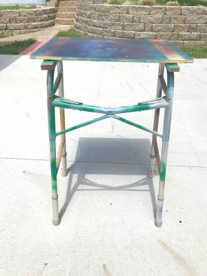 The custom workbench worked as well as he’d hoped. “I’ve used it for years just as pictured,” he says. “It’s very light and portable.” The bench gives him a surface to work on and a place to lay tools instead of on the ground. Nonhof also uses it to hang small objects that need to be spray painted. “I’ve found it’s convenient for supporting large pieces of material when I use a chop saw. The legs are adjustable.”