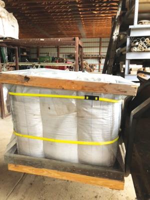 At this point, they had a top and bottom with 24-in. sides. “We put the bottom half on a pallet and used the front-end loader to put the bag in place,” he says. “Then we placed the top on it and attached the binder strap around the middle. There was a gap around the corners, so we looped some extra wire around each side and tightened them to seal the gap.”