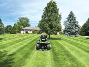 “I set the step-down hitch, so the roller is about 2-in. off the ground when in use,” says Hanuszak. “It pushes over the grass but doesn’t impact the gravel when I turn on the driveway. To remove it, I just pull the receiver hitch pin. It puts in the stripes I wanted, making the lawn look professionally cut.”