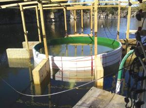 Frey’s floating tank started as an above-ground, 7,500-gal. fish tank in an indoor fish farm. It had a 16-ft. dia. with a height of 5 ft.