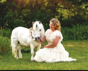 Jessica occasionally makes special appearances with Froggy, her all-white pony, who shows up in disguise as a unicorn. Jessica transforms the all-white Froggy into Rainbow the Unicorn by painting the pony’s hooves glittery gold and attaching a custom-made plastic horn to the pony’s halter.