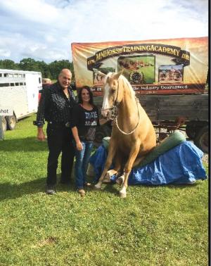 Teaching tricks is a popular part of the school. Surrett teaches his students how to get their horses to take a bow, play dead, sit, count, shake their heads and more.