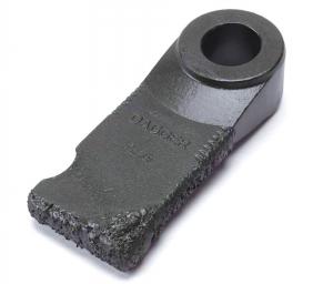 Dagger hammers are hard-faced with suspended carbide to resist abrasion. Evans explains that they feature a good balance of weld matrix to hold up to impact.