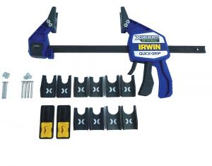 The QC Mate has specially shaped clamp jaws that mount to a ratcheting hand clamp with up to 600 lb. clamping force. The jaws are 13-ga. steel tubing with large structural side gussets.
